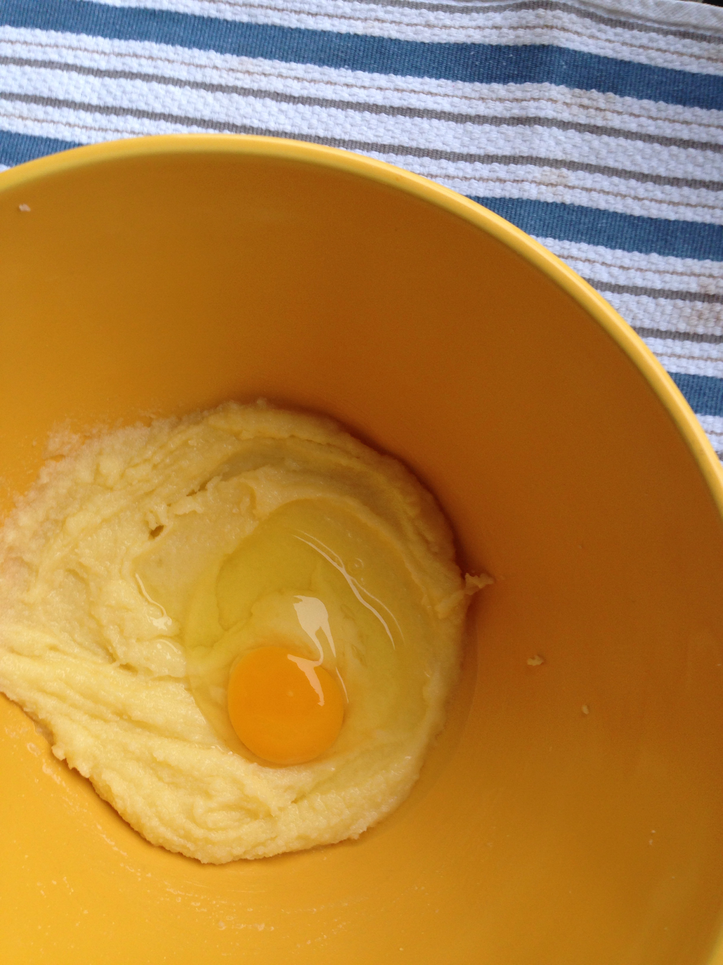 1. Preheat the oven to 325 deg F. Line a baking sheet with tinfoil and spray with Pam or other non-stick cooking oil. Mix together the butter and sugar. Add eggs, orange zest, orange juice, vanilla, and almond extract until fully combined. Add in flour slowly, along with the baking powder and salt. You will end up with a big, sticky ball of dough.