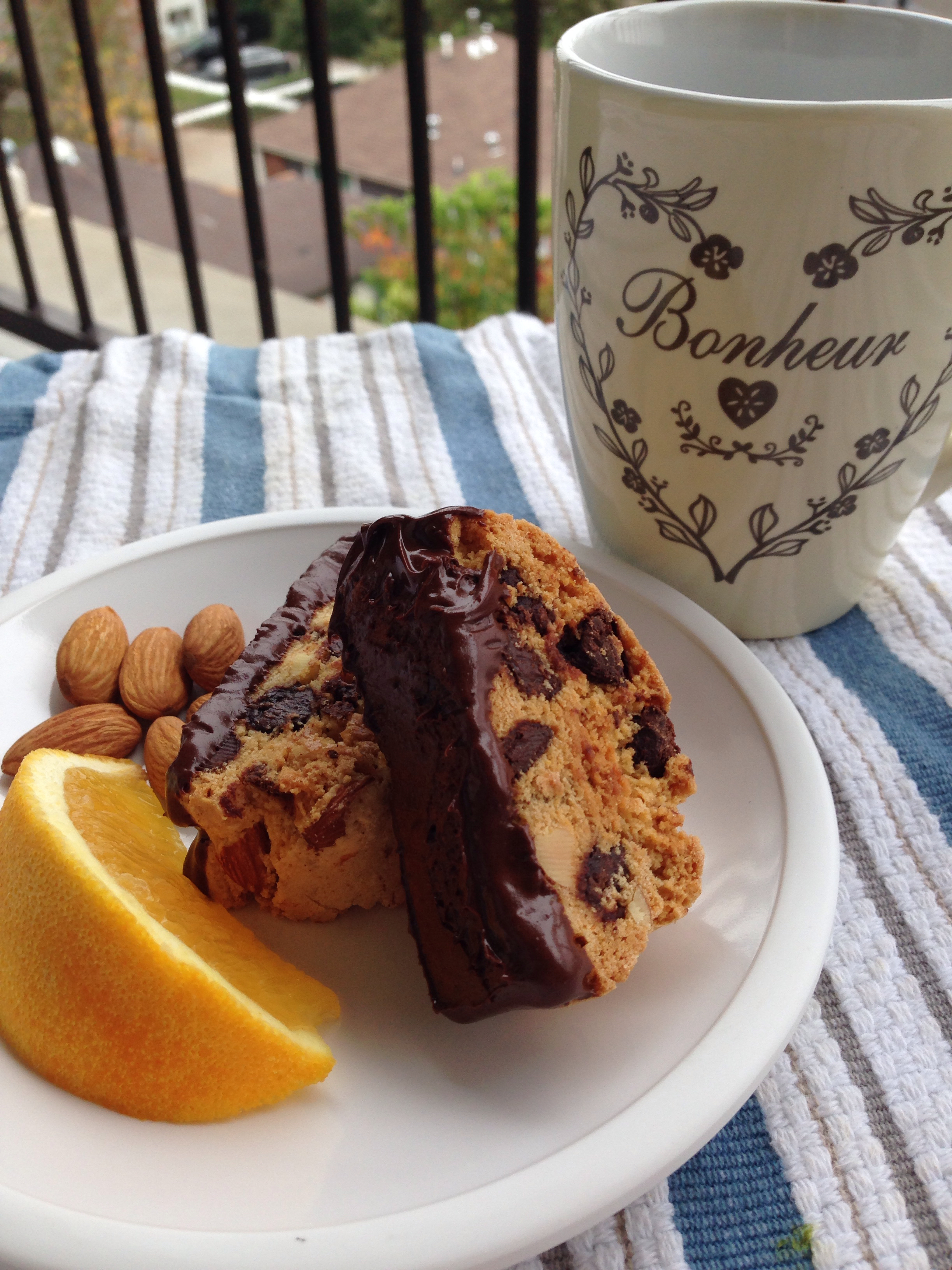 The recipe is great because it isn’t overly sweet with the dark chocolate and hints of orange. Though I love sugar, there’s only so much a cup of tea can stand up to when paired with a cookie. The orange makes it so fresh and fancy feeling, while the crunch from the almonds adds a wonderful texture to the biscotti after you dunk it to softness.