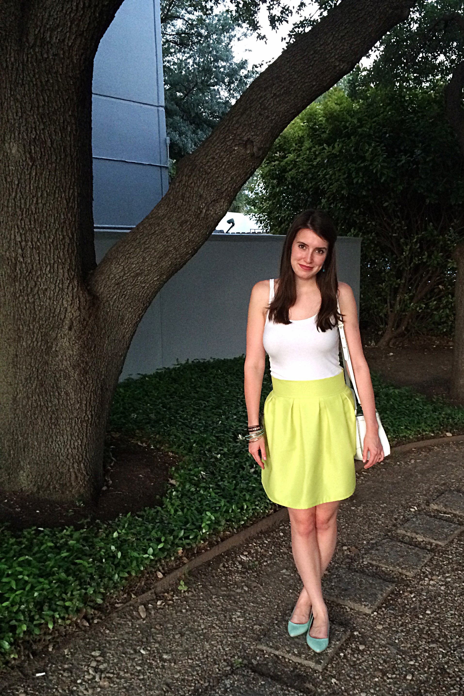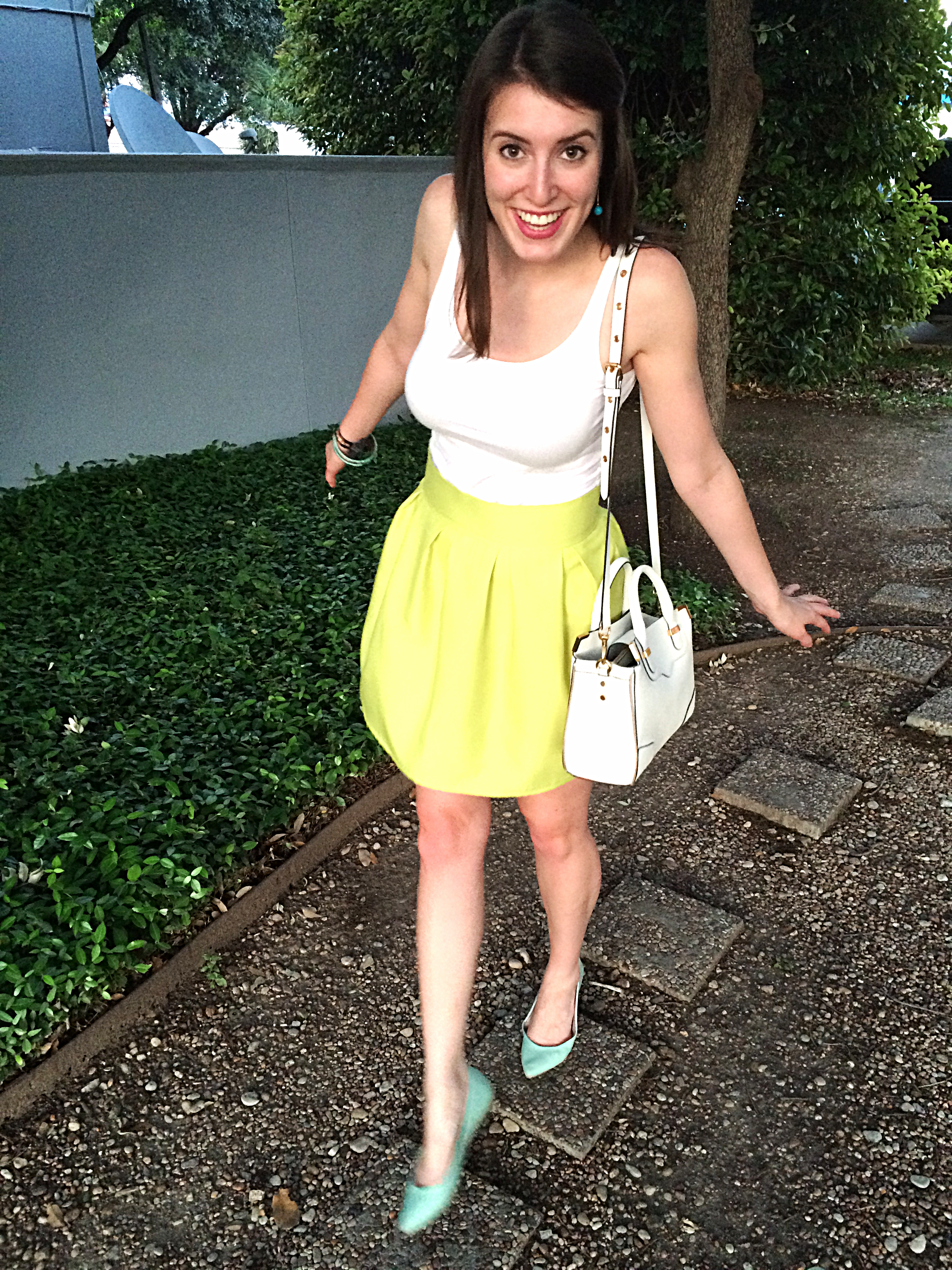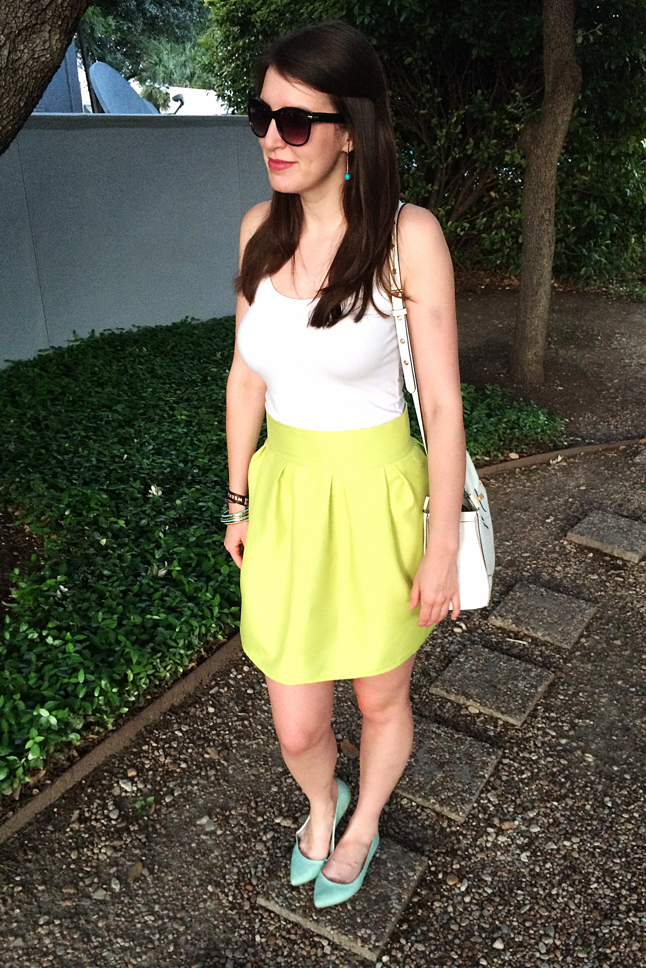 Clothing Details: Skirt – Made by Me || Tank Top – H&M || Shoes – Express (similar – similar) || Purse – Rebecca Minkoff || Bracelets – H&M (similar) || Earrings – Vintage