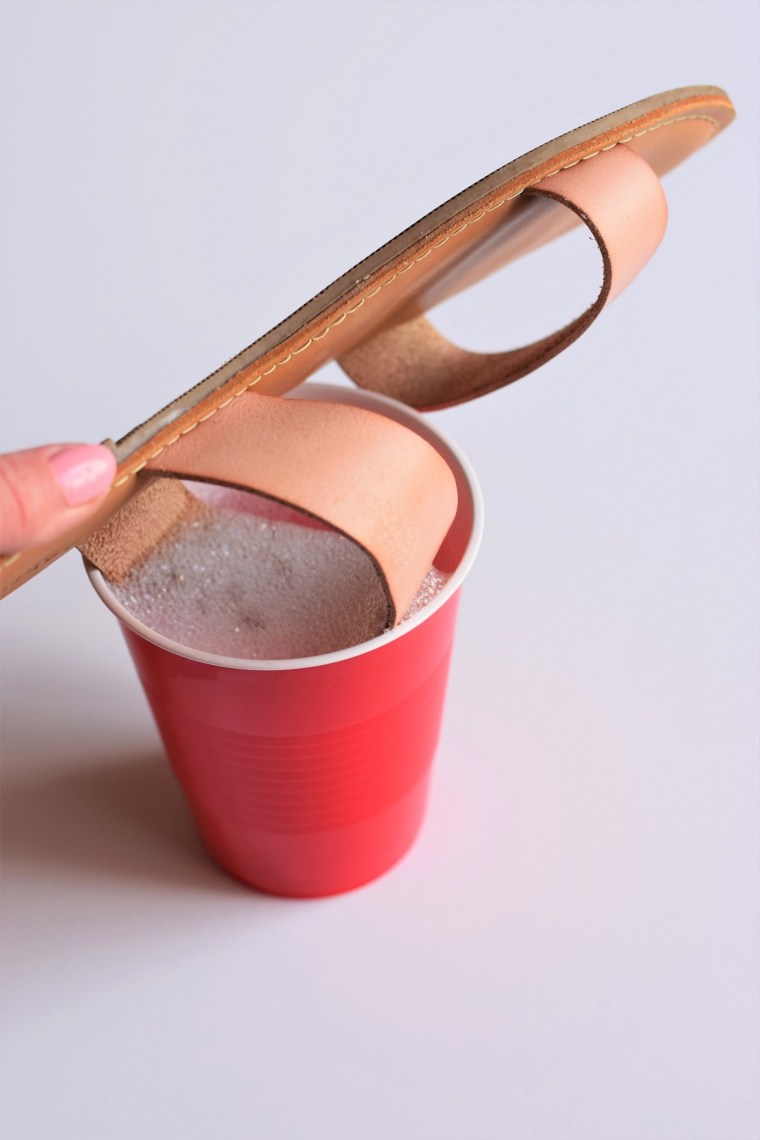 2. If you have something like a sandal, turn the shoe over so that the strap is fully submerged and add more water so that the sandal strap is fully covered. Leave the shoe submerged in the water for about an hour.
