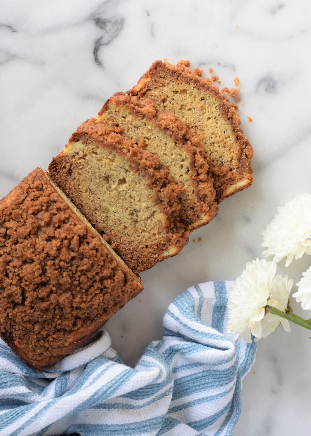 Cream Cheese Stuffed Banana Bread with Crumble Topping