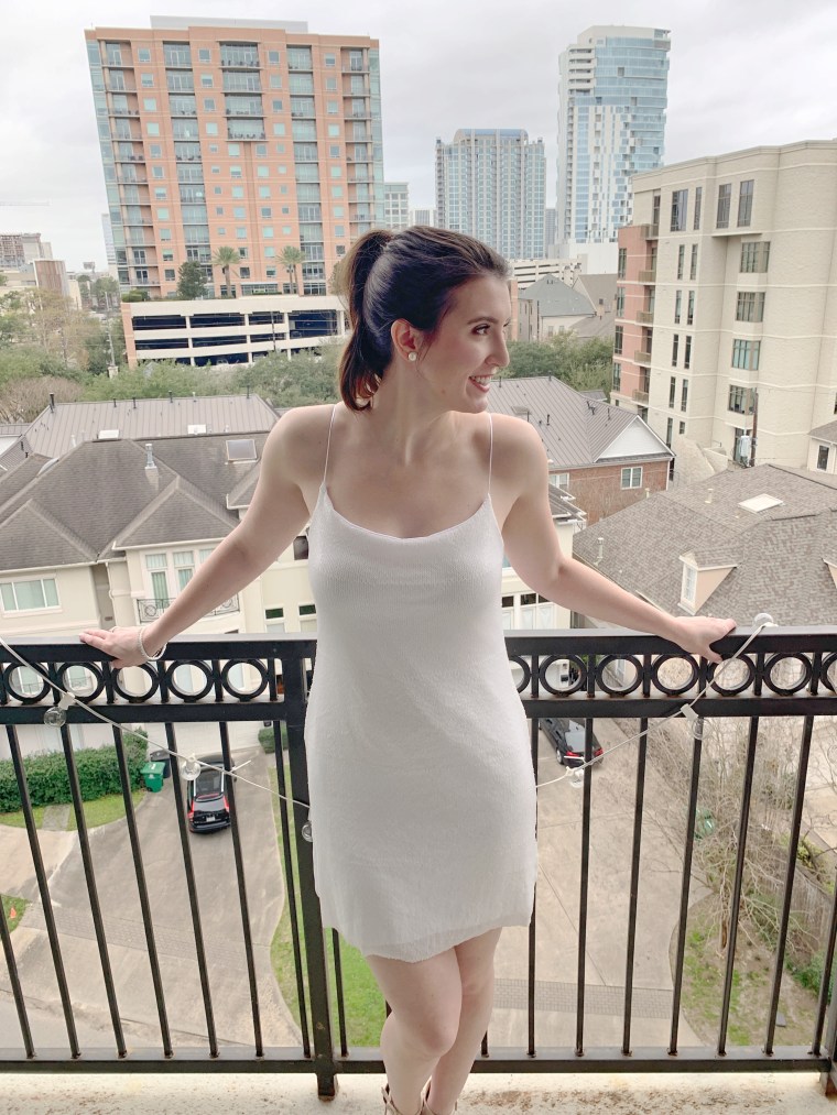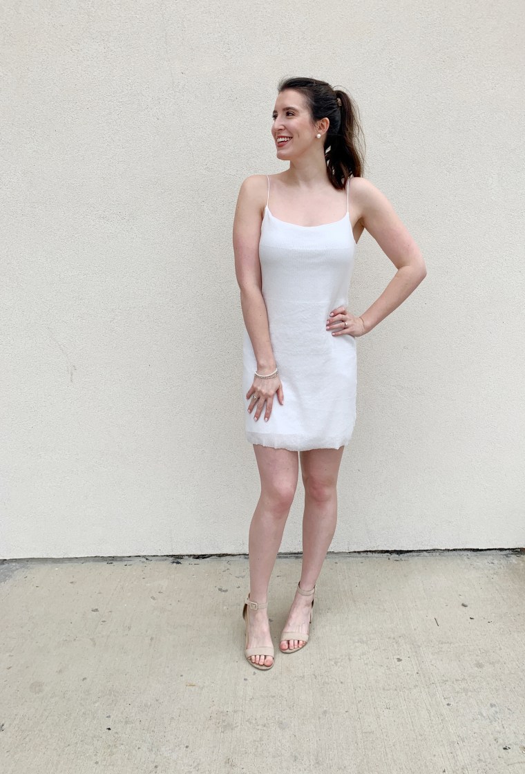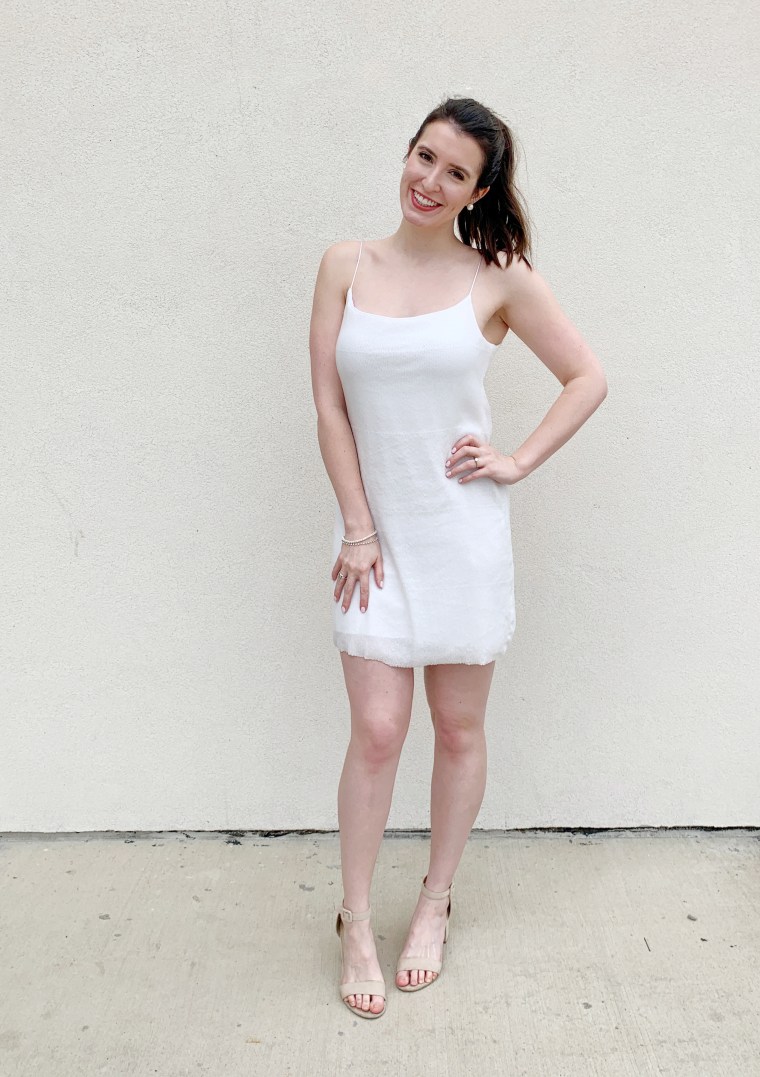 Something short, sweet, sparkly, and white – perfect for a bachelorette! This was the perfect little white dress to wear out dancing, and it is so much more comfortable than you might imagine. The sequins are not itchy like some I’ve worn before, and they provided just the right amount of shimmer.