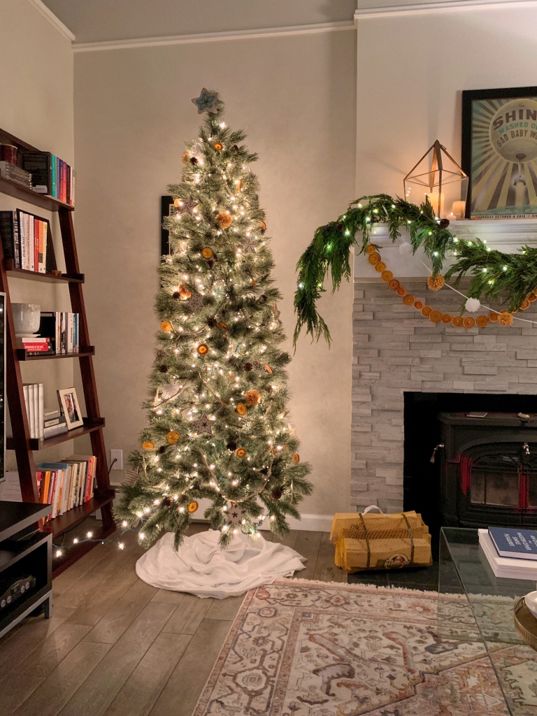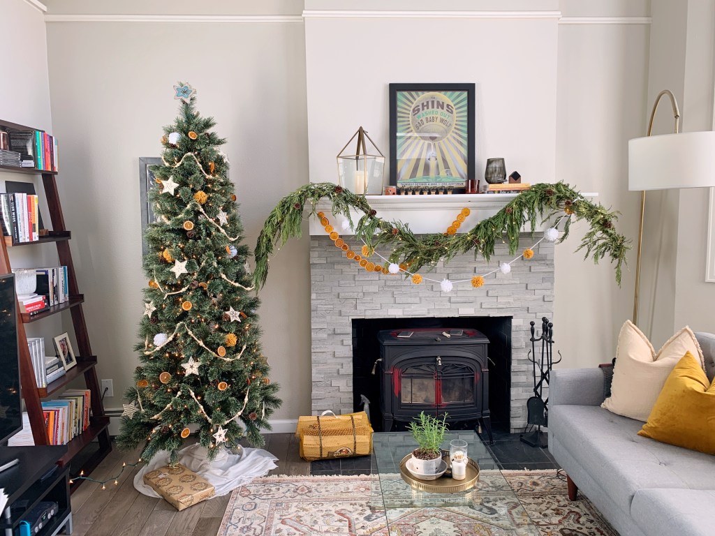 I went for the first style from the list this year and it turned out SO GOOD. This is the tree I picked up from Walmart because I thought it had a great, natural look (for a very good price!) and also was the perfect size for our space. Note: A skinny tree never looks incredibly natural, but try to stick to one that is at least 3 feet wide if you are going to make it 6 feet or taller. This will help the proportions to look closer to normal.