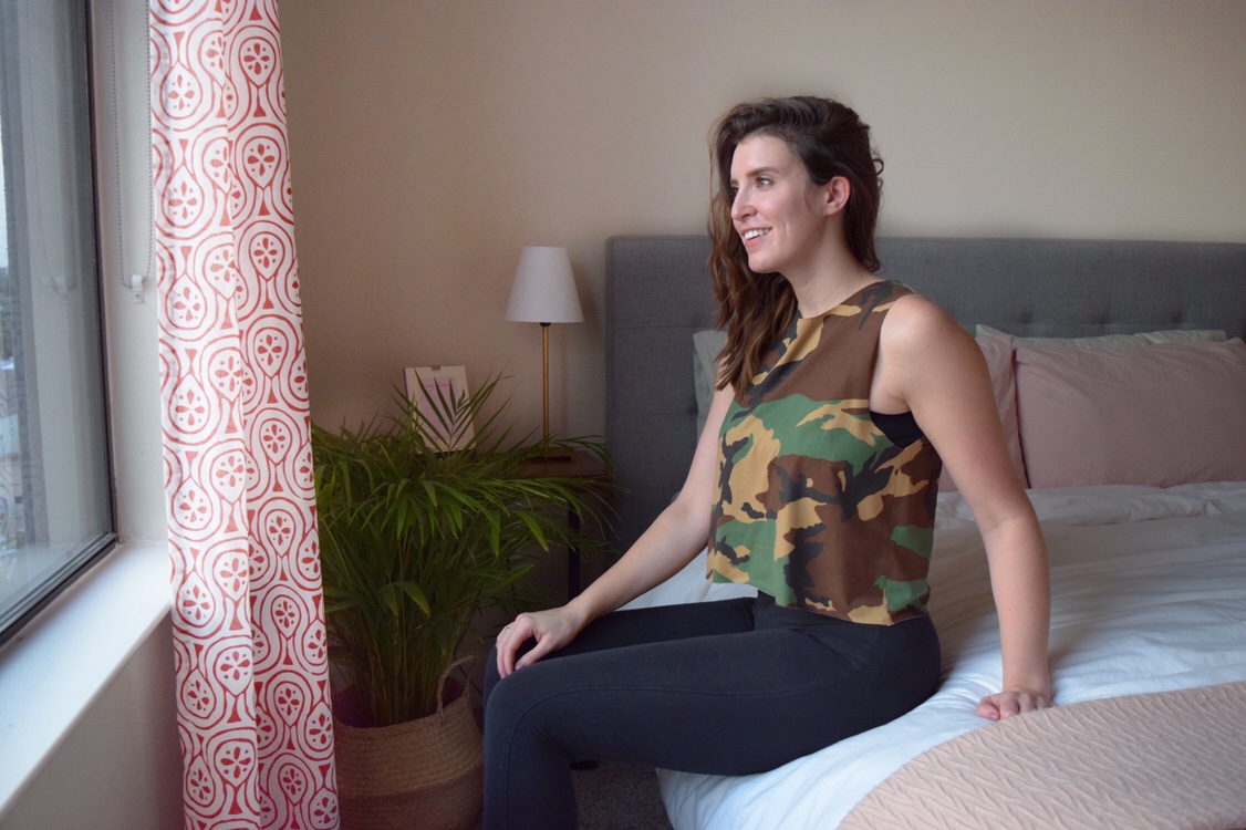 As a Chicago native, I never in my wildest dreams imagined I would end up owning anything camo print. But as trends come and go, camouflage is here and I’m kind of digging it! In order to ease into the trend I decided to make the most adorable little athleisure set to wear around the house.